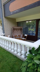 Genießen Sie die gute Luft und die die Sonne auf der großzügigen Terrasse, die Sie direkt vom Wohnzimmer aus betreten. Ein Schläfchen im Strandkorb oder eine Mahlzeit im Freien- kein Problem.